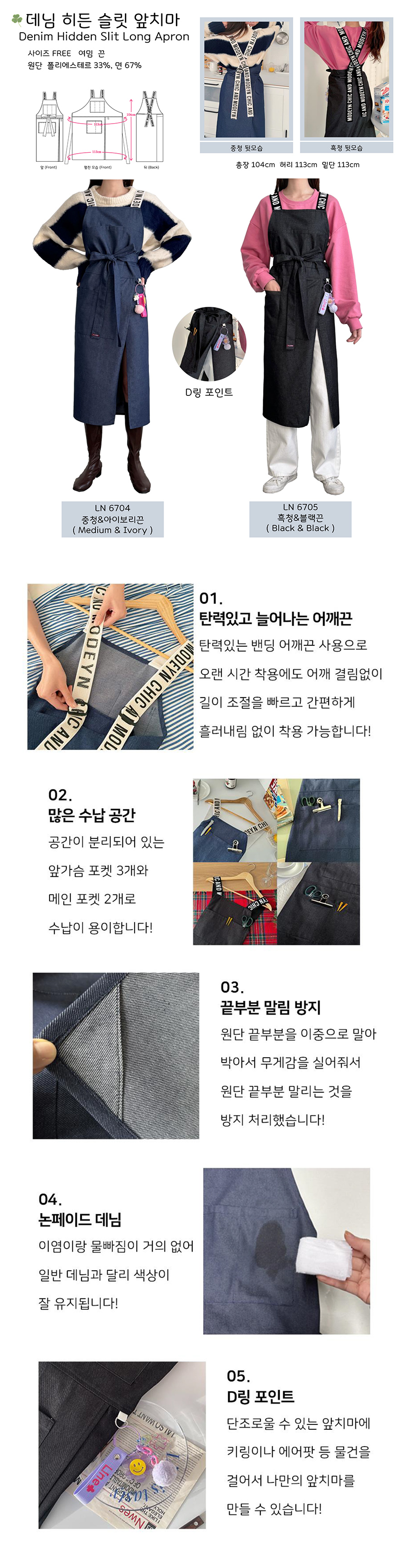 [9119] [라인] 데님 히든슬릿 롱 앞치마