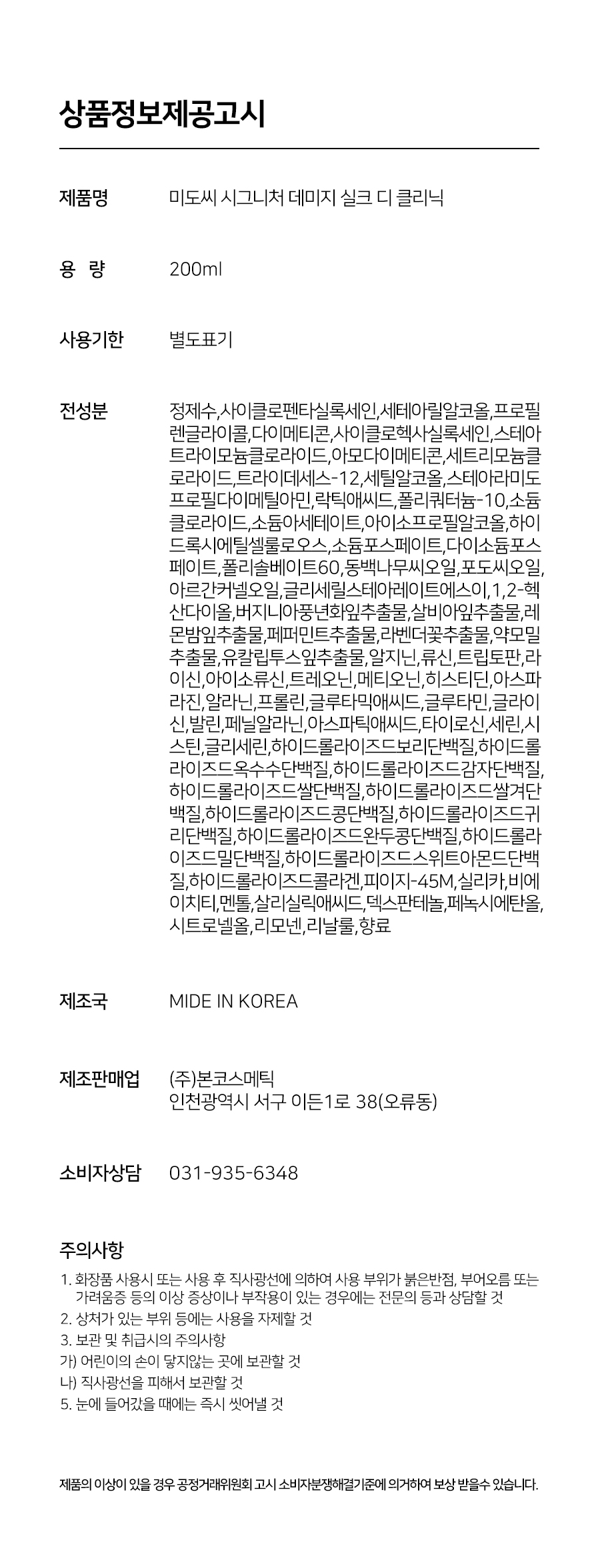 [3890] [미도씨] 시그니처 데미지 실크 디 클리닉 200ml